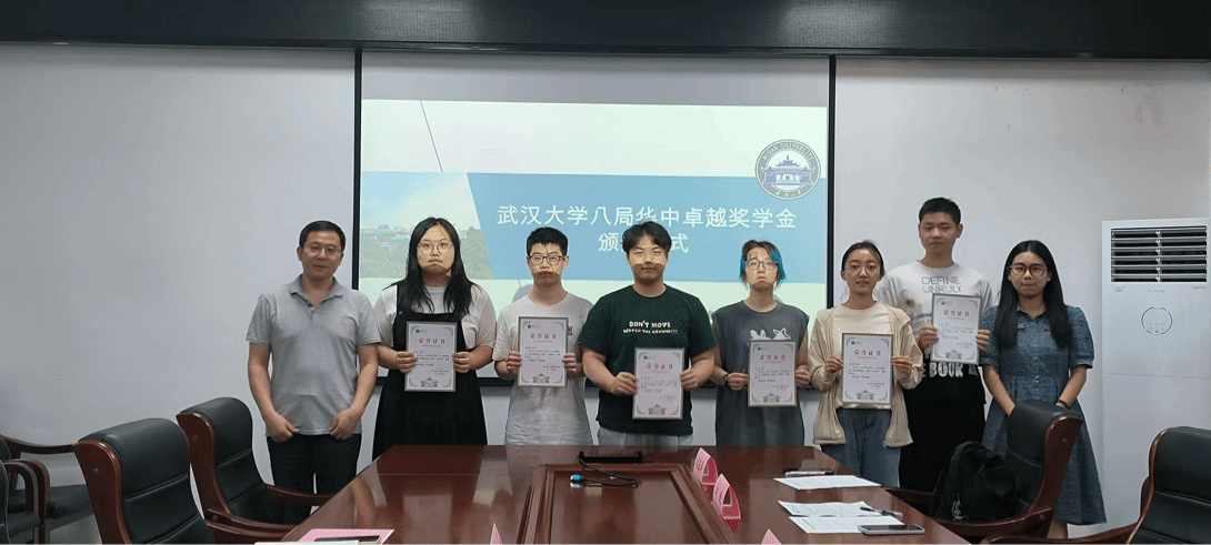 学院党委副书记王忠海老师宣读表彰文件,决定授予张元洋等10名同学武汉大学2022-2023学年度“八局华中”卓越奖学金。