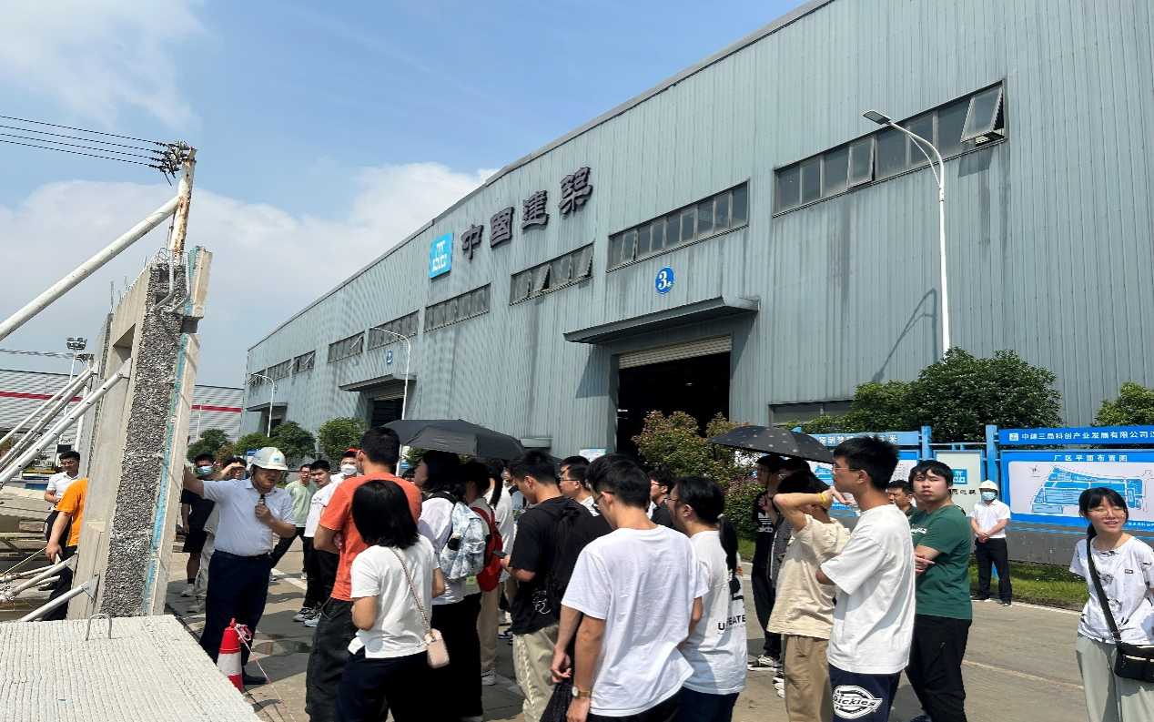 上午9点,学院师生乘大巴来到中建三局科创公司汉南厂,汉南厂厂长祁乐为老师和同学们讲解了智慧化预制构件的生产情况。