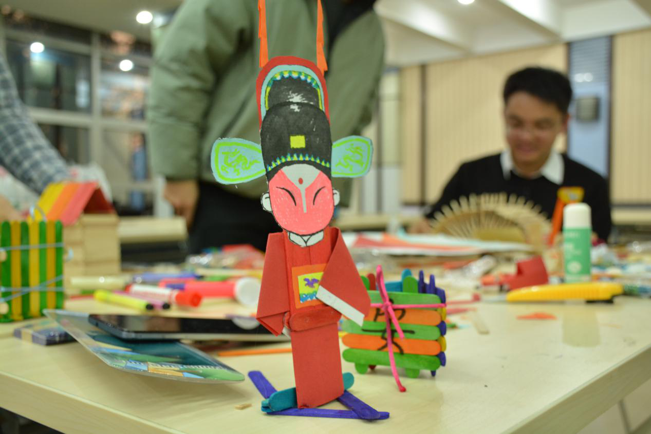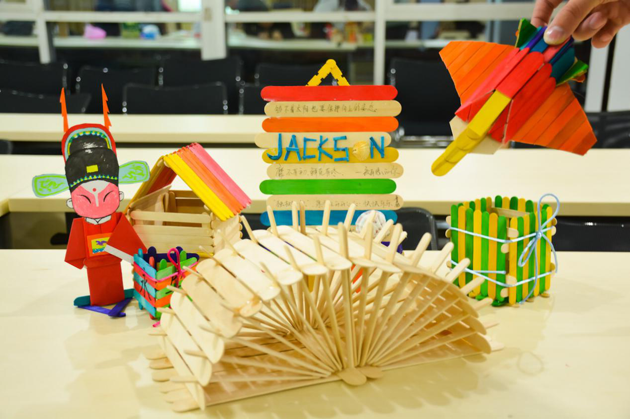 本次活动共有22人参与,全体分为4个小组。伴随着温馨的背景音乐,从初始活动的彩旗设计环节同学们就表现出了极大的热情,各组同学都充分发挥自己的创意,在将近一个小时的时间里完成了极具创意的彩旗的设计与制作,并慷慨激昂的介绍了队伍的口号及设计理念。各个小组成员集思广益,通过小组成员间的相互合作,在冰棒棍巧妙的排列组合中,一个个富有创意、心思的作品应运而生。它们或是笔筒、广告牌,又或是充满爱的小房子、秋千,再或是充满科技感的战斗机。作品成果丰富多彩、形式多样,充分展现武大学子的动手能力以及制作能力。