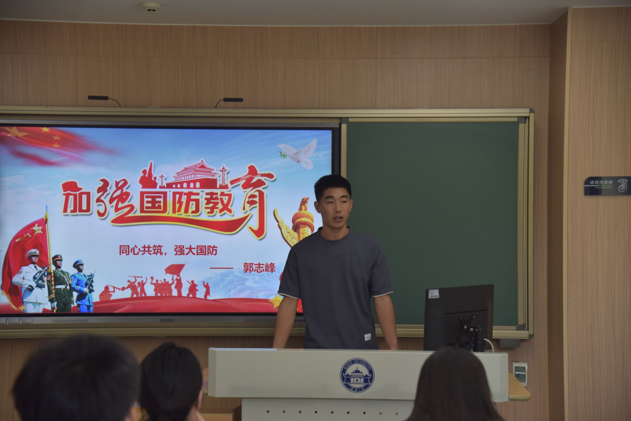 接下来,武汉市优秀退役大学生士兵、研究生会秘书处负责人郭志峰同学为研会成员带来了《同心共筑,强大国防》国防教育主题党课。他从国防的含义、我国基本国防情况、我国现代化国防建设、我国国防事业发展历程这四个方面展开,为研会成员详细介绍了国防的职能、国防的重要性、我国周边安全形势、国防科学家事迹等知识,增强了研会成员的爱国主义观念和民族忧患意识。最后,郭志峰同学号召武大学子要肩负起时代的使命,为实现中国梦、强军梦发光发热!