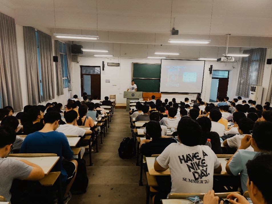 “大家都可以拿出手机加我的QQ好友,后面有什么问题我都很乐意和学弟学妹们交流!”唐兆亿学长的热忱引起了19级学弟学妹的一阵热烈掌声,6教301里济济一堂,一场关于“规划”和“准备”的交流大会正在进行中。