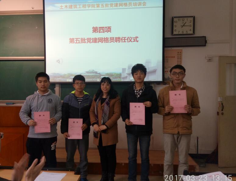 3月23日中午,det365APP第五批党建网格员培训会暨第四批优秀党建网格员表彰仪式在工学部四教105教室举行,全体第五批党建网格员参加会议。学院党委副书记李海燕、谢献谋,全体辅导员出席会议。培训会由学工办主任肖娴娴主持。